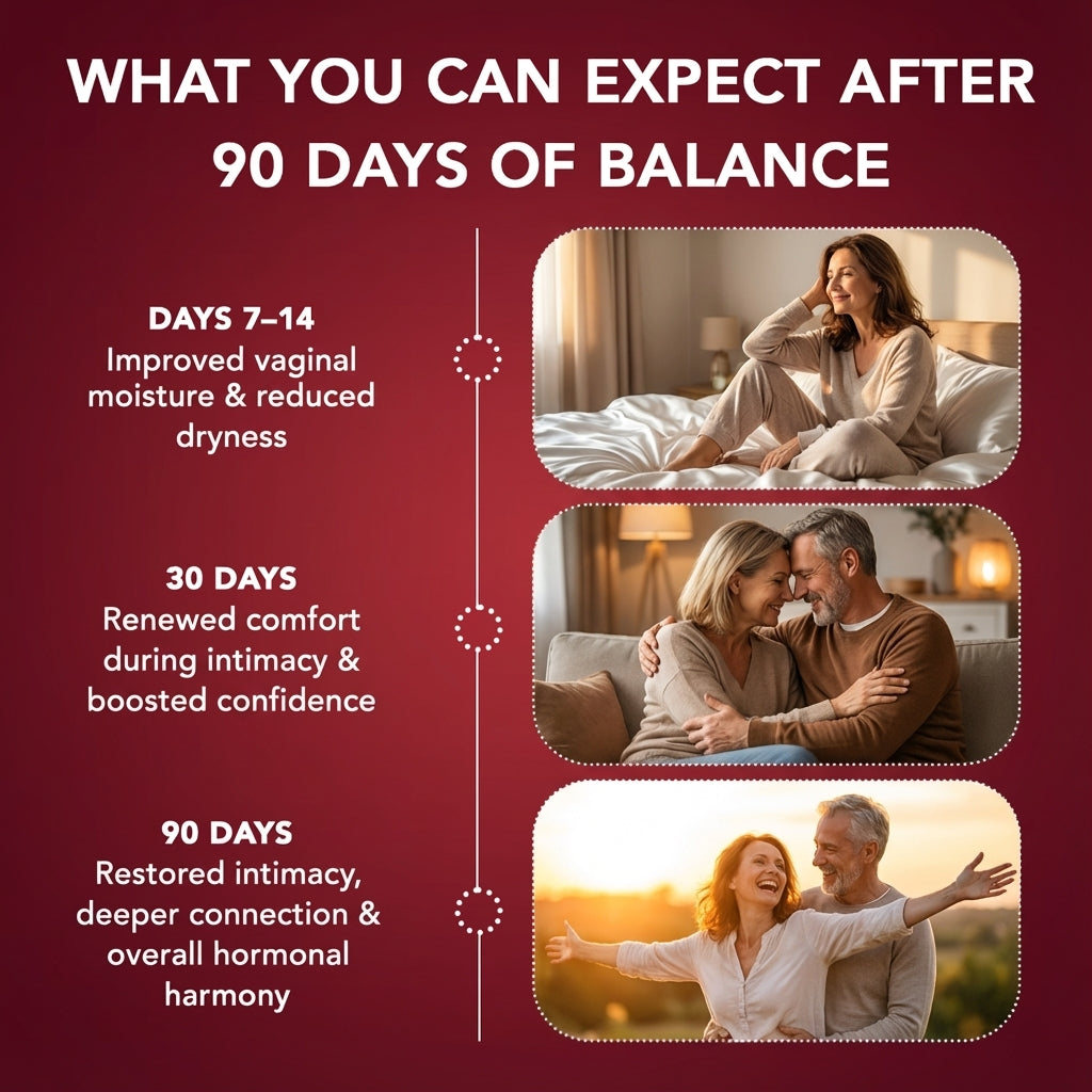 Die meisten Frauen verspüren keine Nebenwirkungen. Einige bemerken in den ersten Tagen leichte Verdauungsbeschwerden, da sich die Darmflora wieder einpendelt – dies ist normal und klingt schnell wieder ab. Im Gegensatz zur Hormonersatztherapie (HRT) birgt Balance kein erhöhtes Risiko für Blutgerinnsel, Brustkrebs oder andere schwerwiegende Nebenwirkungen.