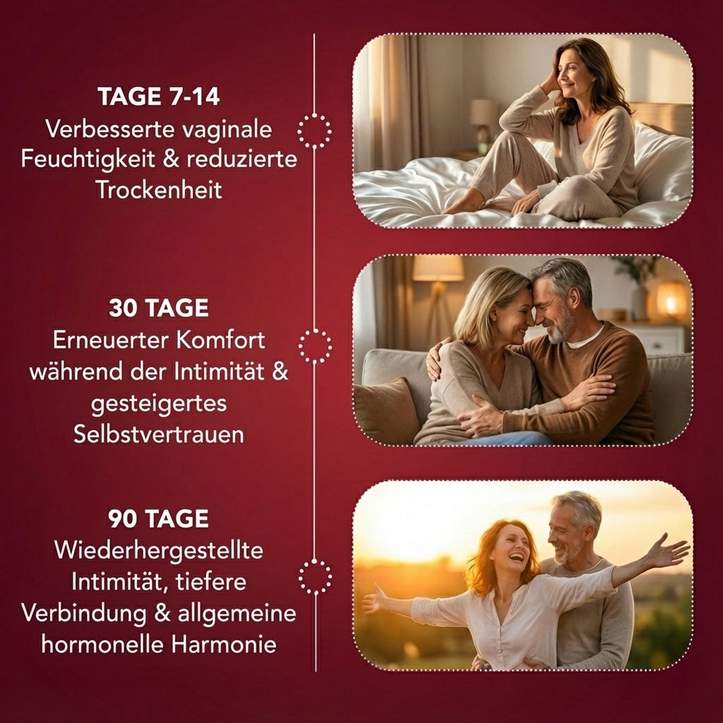 Die meisten Frauen bemerken innerhalb von 2–4 Wochen Verbesserungen. Hitzewallungen und Schlafstörungen bessern sich typischerweise zuerst, gefolgt von einer Stabilisierung der Stimmung und mehr Energie. Gewichtsverlust tritt meist nach 4–8 Wochen ein, wenn sich die Darm-Hormon-Achse wieder normalisiert. Für eine vollständige Veränderung empfehlen wir eine mindestens 90-tägige, konsequente Anwendung.