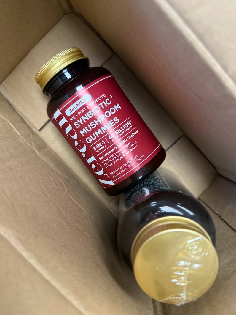 Balance works on TWO pathways simultaneously. The Synbiotic blend (probiotics + prebiotics) restores your estrobolome—the gut bacteria that regulate estrogen and metabolism. The adaptogenic mushroom calms your stress-hormone axis. Together, they create 5X better absorption than regular supplements, delivering complete relief from the inside out.