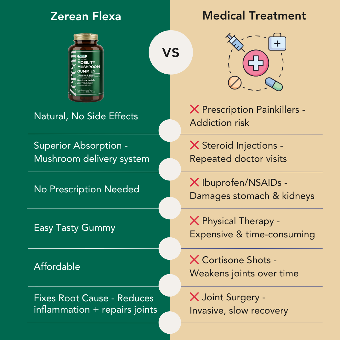Flexa's mushroom-powered formula solves the one problem other supplements ignore: absorption. When your body can actually use the ingredients, you get real relief—fast.